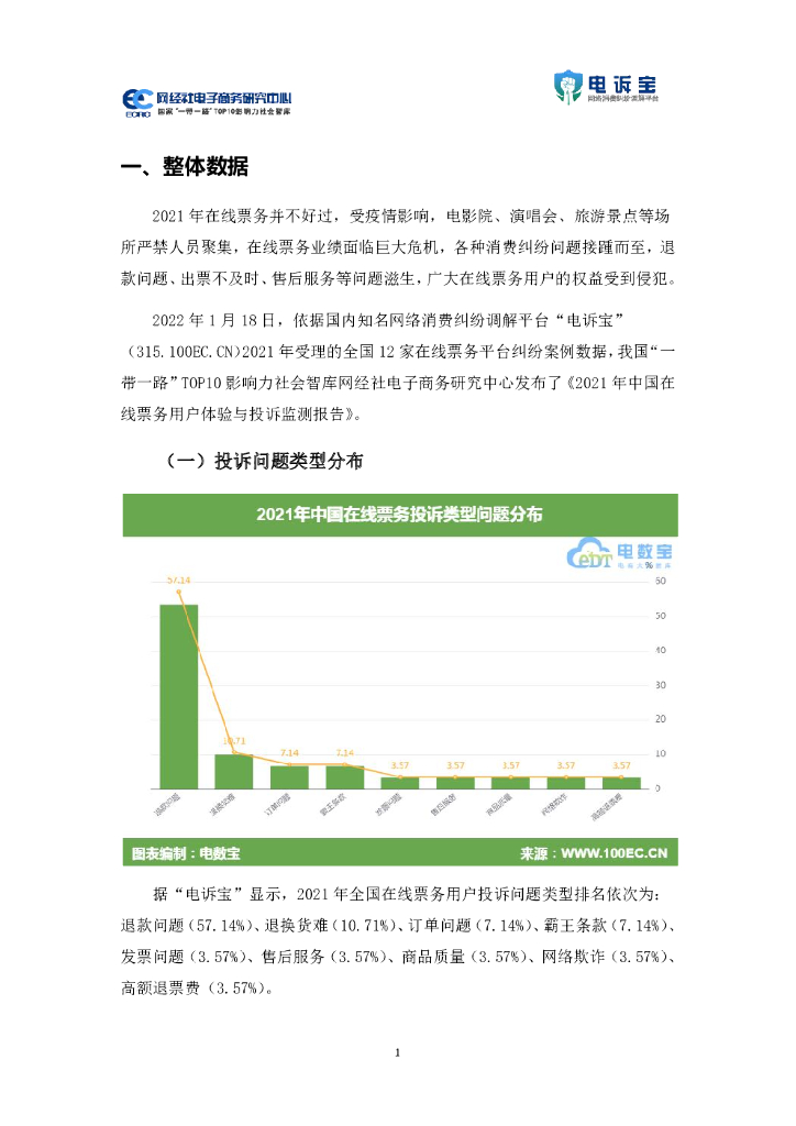 网经社:2021年中国在线票务消费投诉数据与典型案例报告.pdf