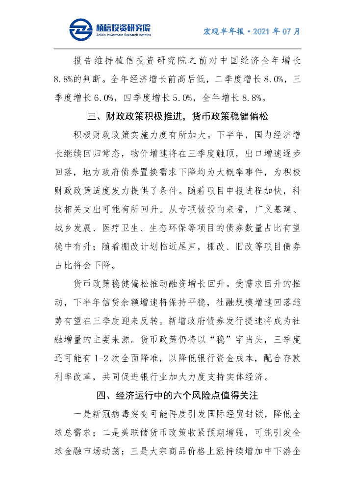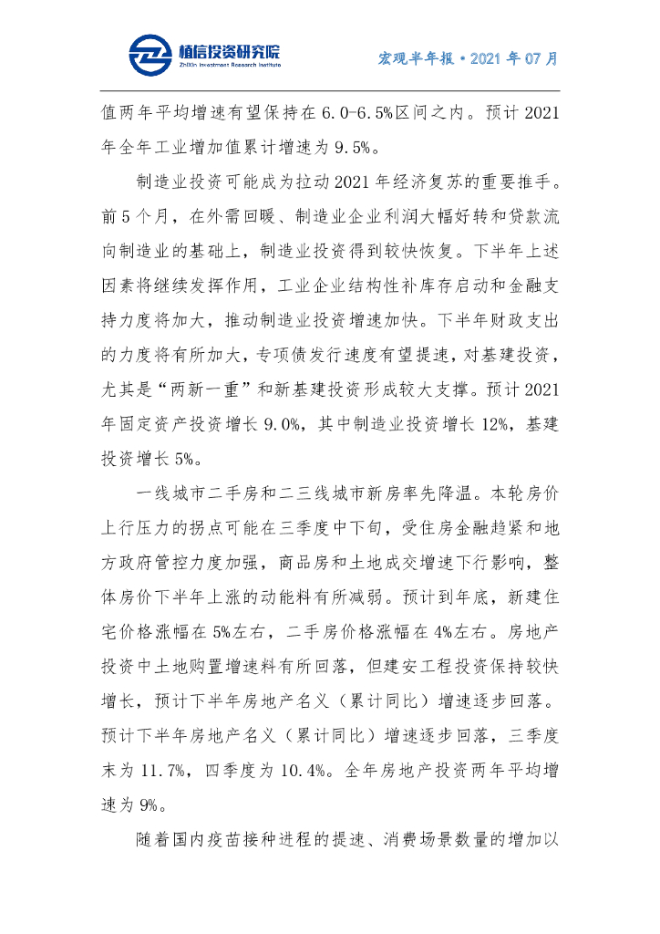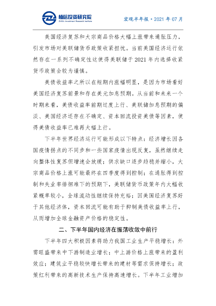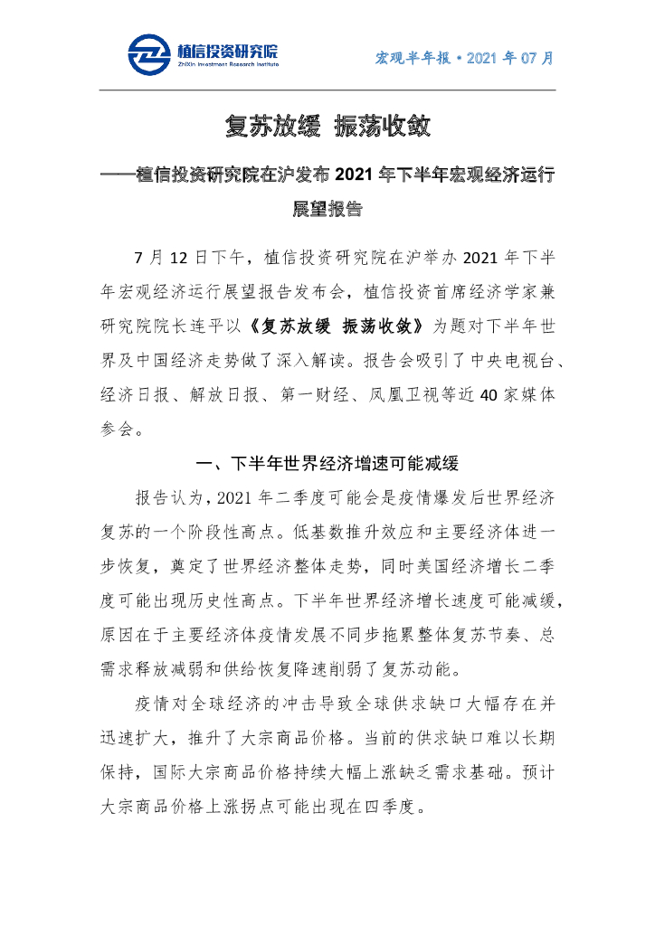 植信投资:2021年下半年宏观经济运行展望报告:复苏放缓 振荡收敛.pdf