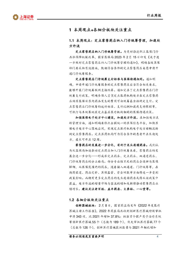 上海证券:医药生物行业周报:定点零售药店纳入门诊统筹管理,加速处方外流.pdf