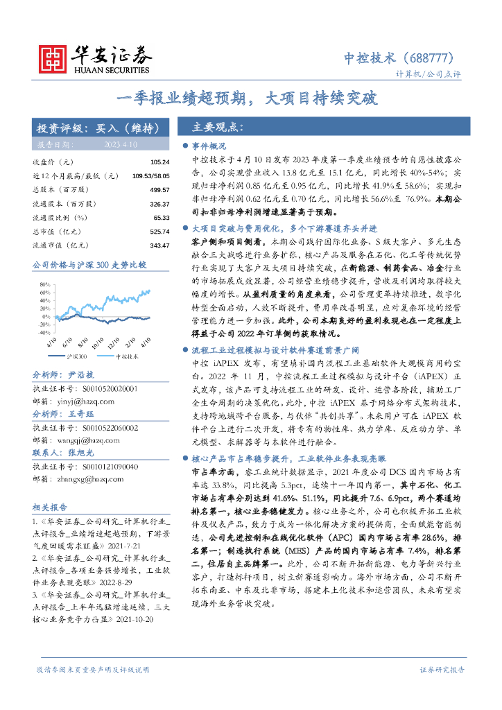 华安证券:中控技术(688777)-一季报业绩超预期,大项目持续突破.pdf