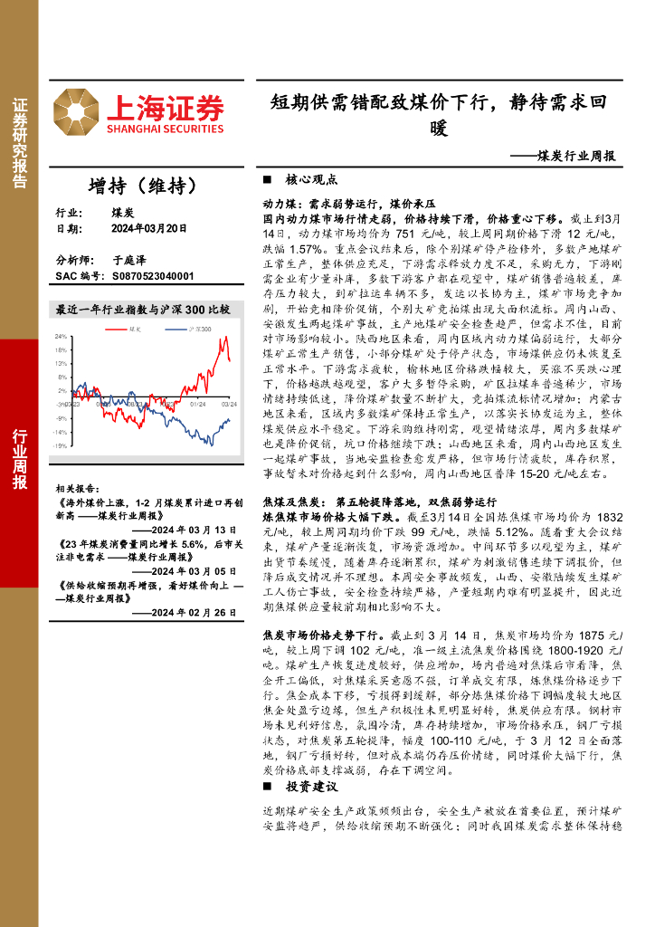 上海证券:煤炭行业周报:短期供需错配致煤价下行,静待需求回暖.pdf