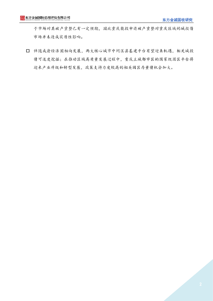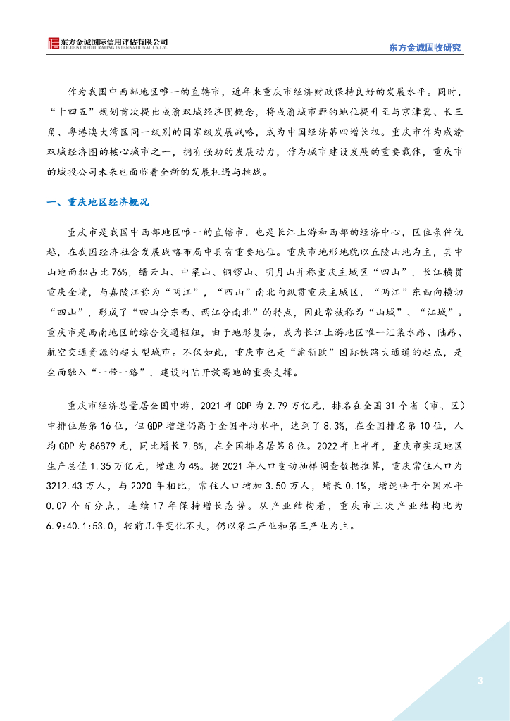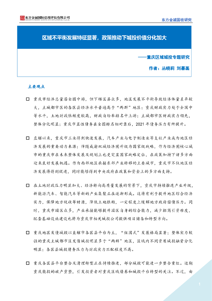 东方金诚:重庆区域信用风险研究-区域不平衡发展特征显著,政策推动下城投价值分化加大.pdf