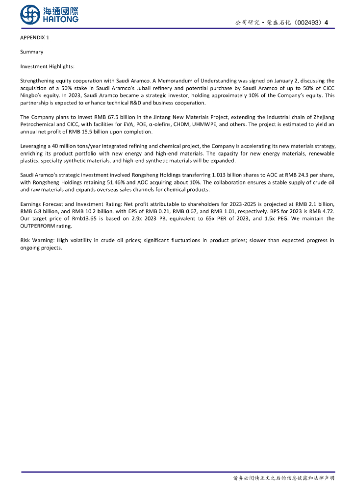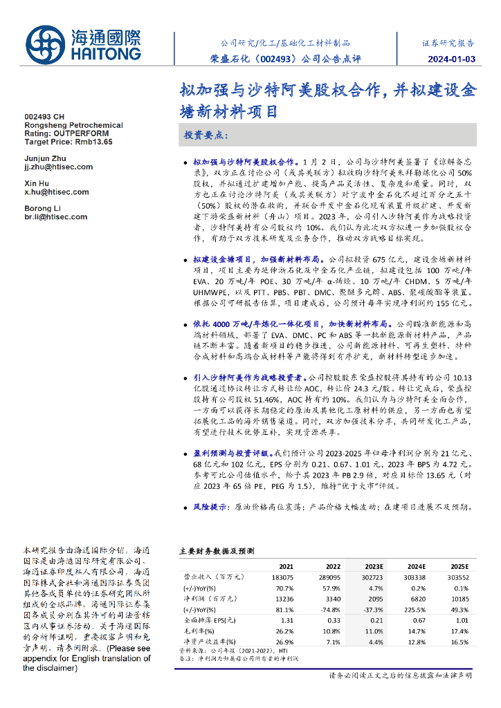 海通国际:荣盛石化(002493)-公司公告点评:拟加强与沙特阿美股权合作,并拟建设金塘新材料项目.pdf