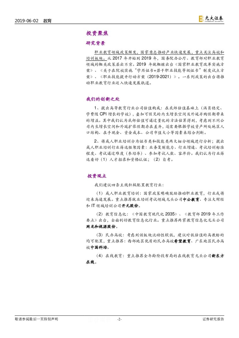 光大证券:教育行业2019年下半年投资策略:职业教育政策红利,关注高校和培训.pdf