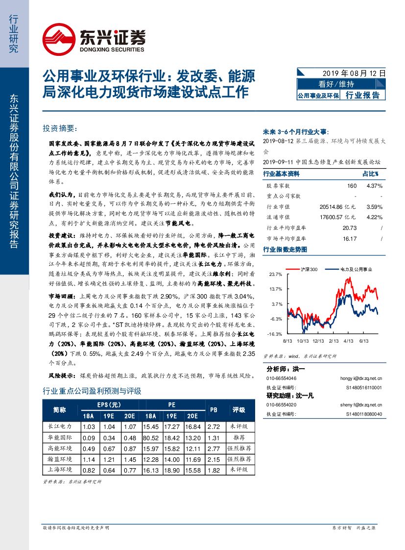 东兴证券:公用事业及环保行业:发改委、能源局深化电力现货市场建设试点工作.pdf