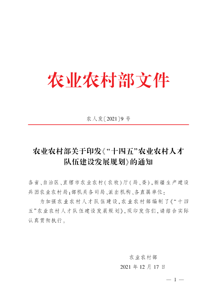 ”十四五“农业农村人才队伍建设发展规划.pdf