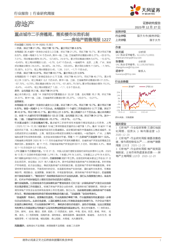 天风证券:房地产销售周报:重点城市二手房翘尾,落实楼市长效机制.pdf