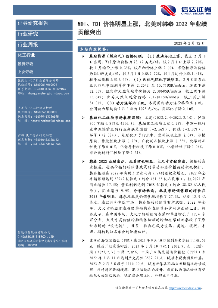 信达证券:化工行业周报:MDI、TDI价格明显上涨,北美对韩泰2022年业绩贡献突出.pdf