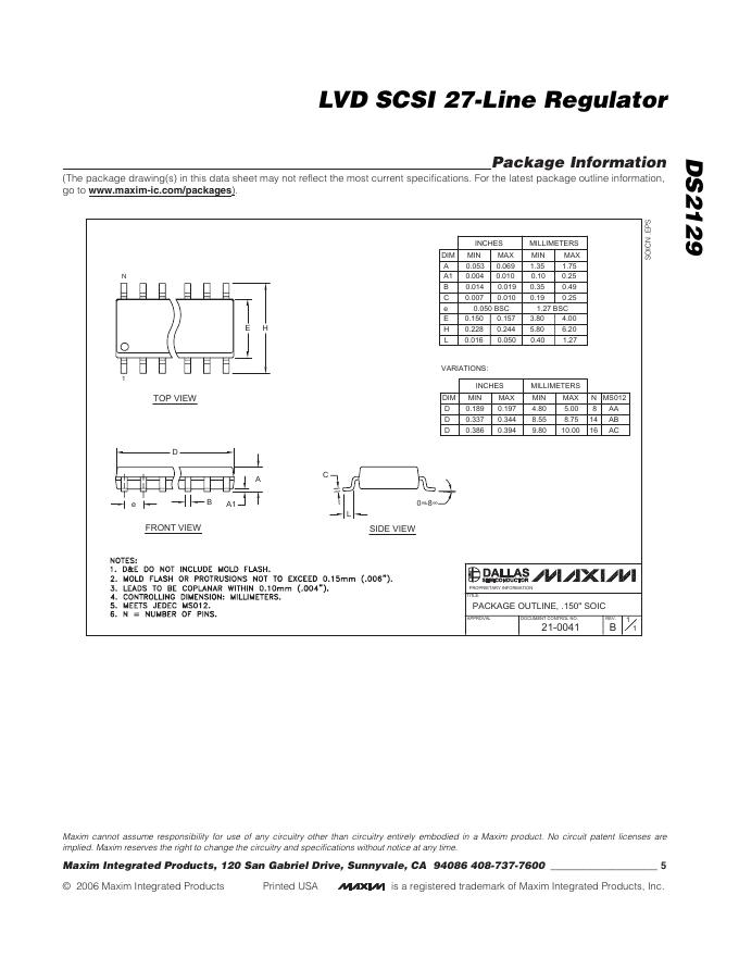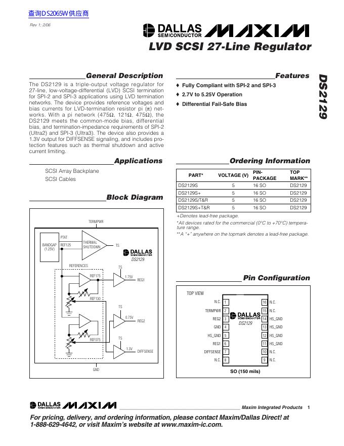 MAXIM DS2129 LVD SCSI 27-Line Regulator 数据手册.pdf