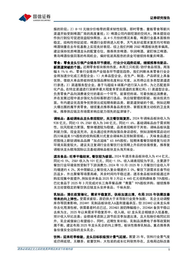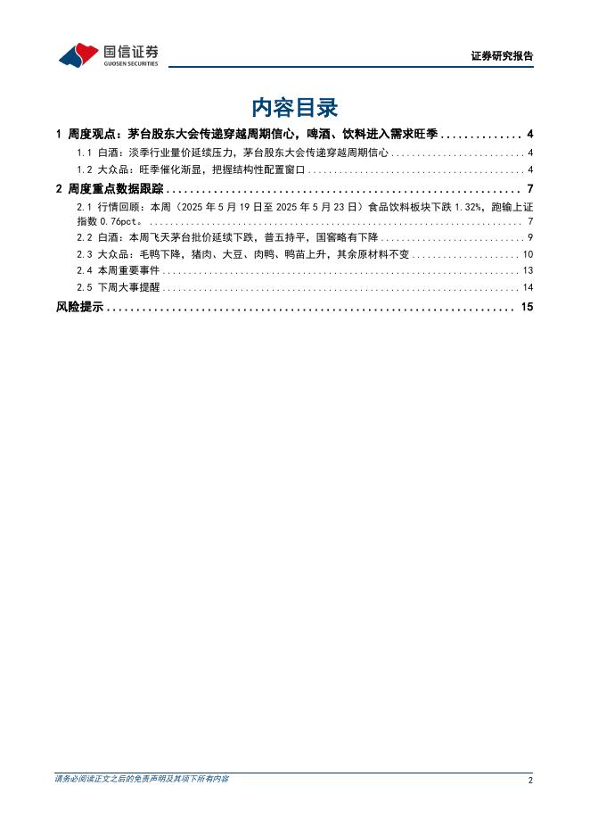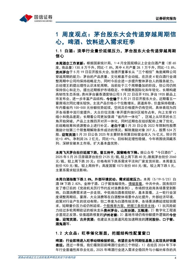 国信证券:食品饮料周报(25年第21周):茅台股东大会传递穿越周期信心,啤酒、饮料进入需求旺季.pdf