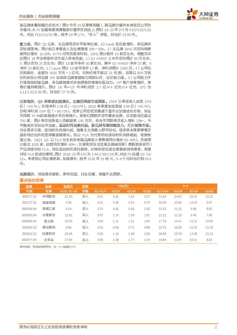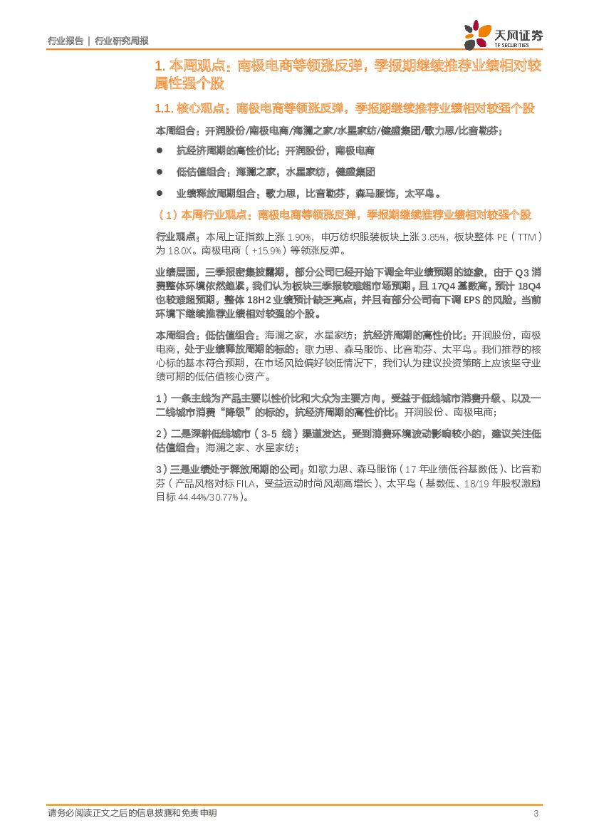 天风证券:纺织服装行业研究周报:南极电商等领涨反弹,季报期继续推荐业绩相对较强个股.pdf