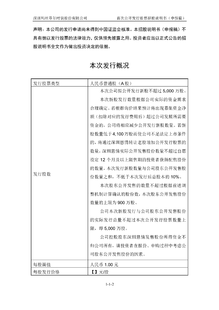 深圳玛丝菲尔时装股份有限公司深交所主板IPO上市招股说明书.pdf