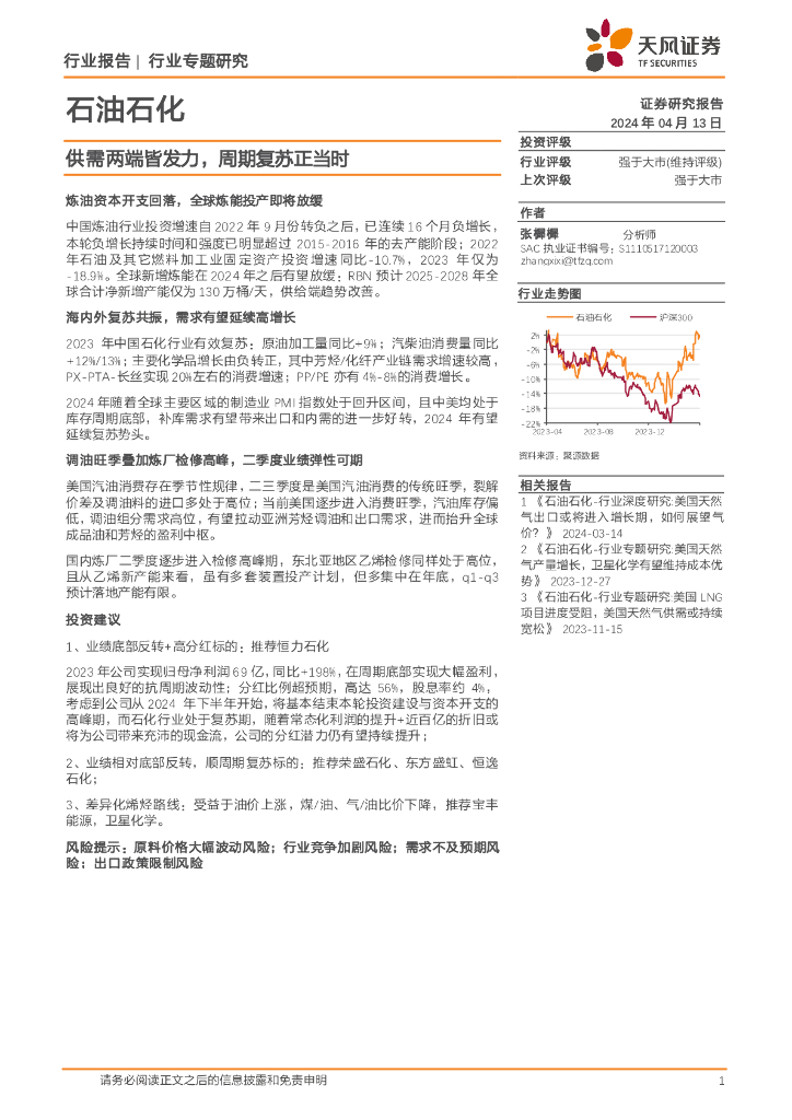 天风证券:石油石化行业专题研究:供需两端皆发力,周期复苏正当时.pdf