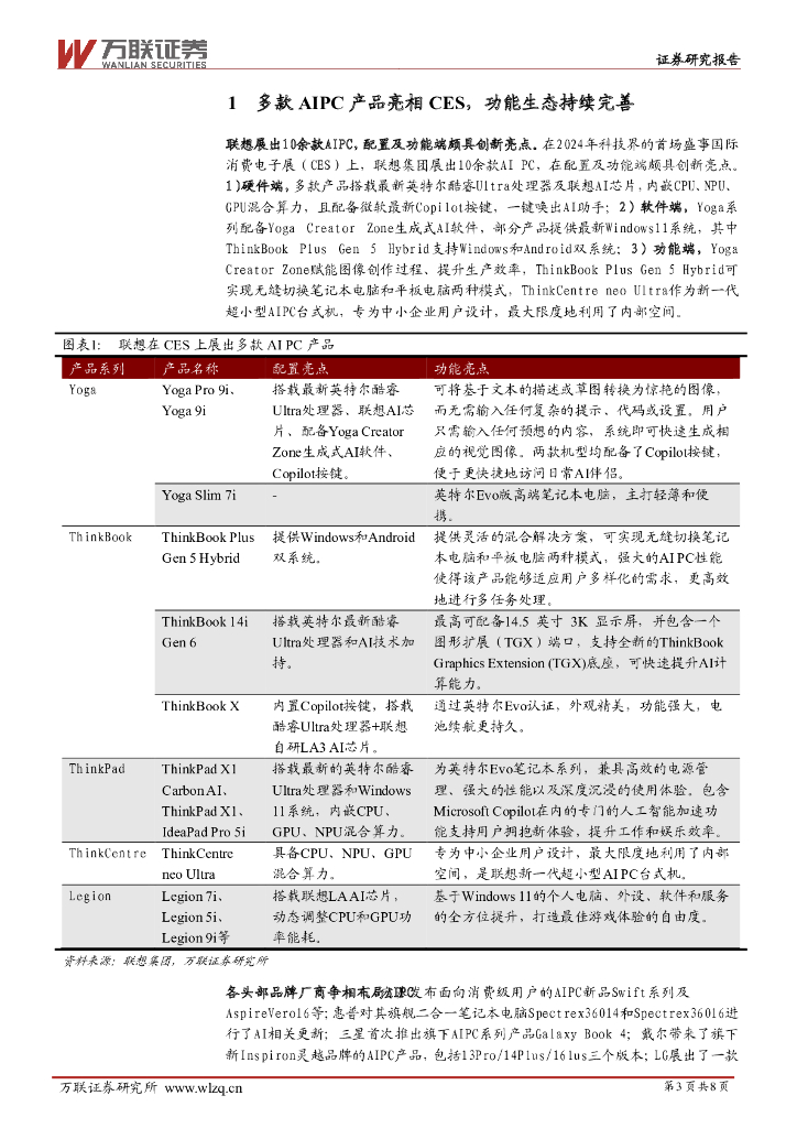 万联证券:电子行业跟踪报告:多款AIPC如期亮相CES,产业链创新活力迸发.pdf