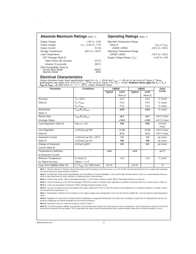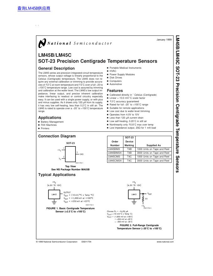 national semiconductor LM45B/LM45C SOT-23 Precision Centigrade Temperature Sensors 数据手册.pdf