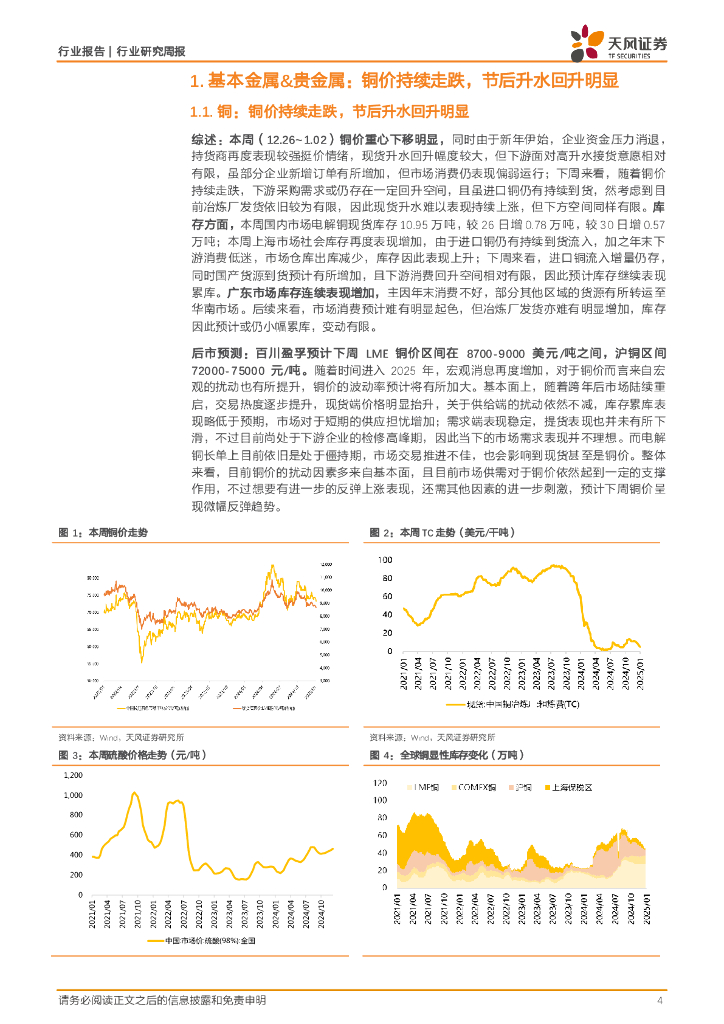 天风证券:金属与材料行业研究周报:铜价持续走跌,节后升水回升明显.pdf