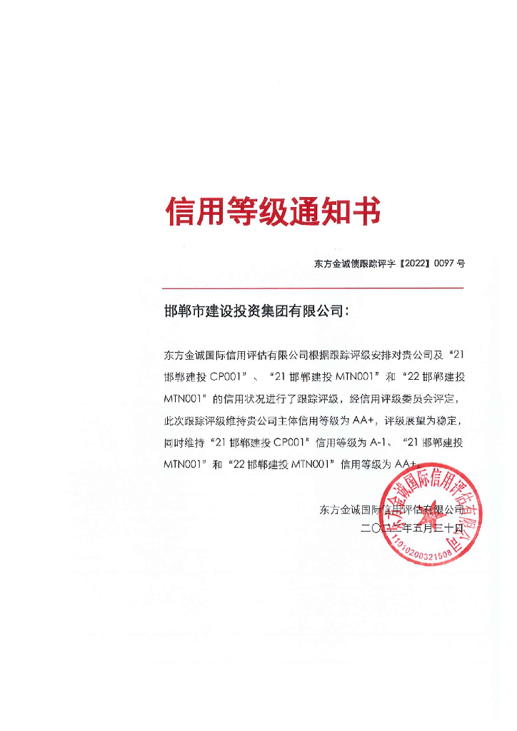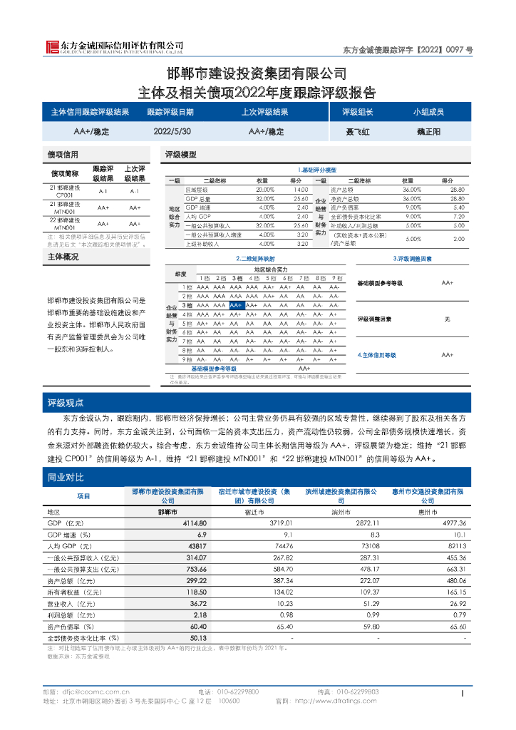 东方金诚:邯郸市建设投资集团有限公司主体及相关债项2022年度跟踪评级报告.pdf