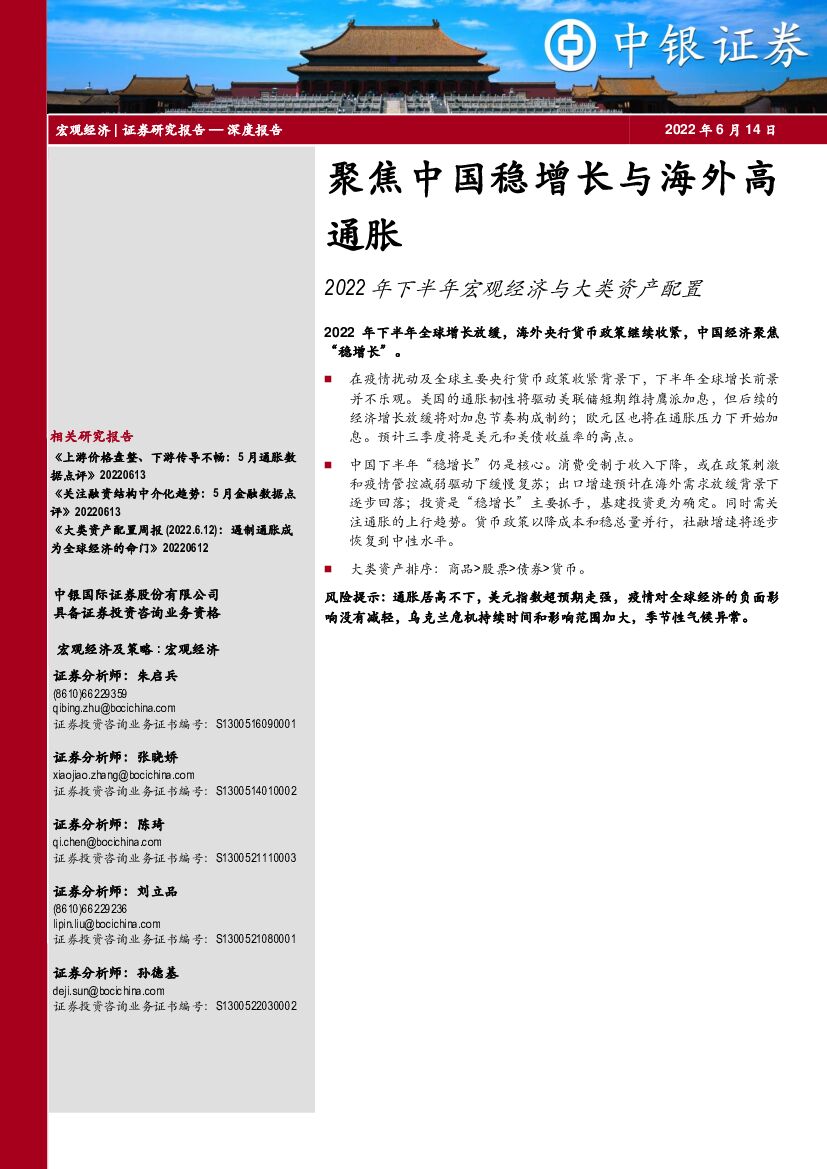 中银证券:2022年下半年宏观经济与大类资产配置:聚焦中国稳增长与海外高通胀.pdf