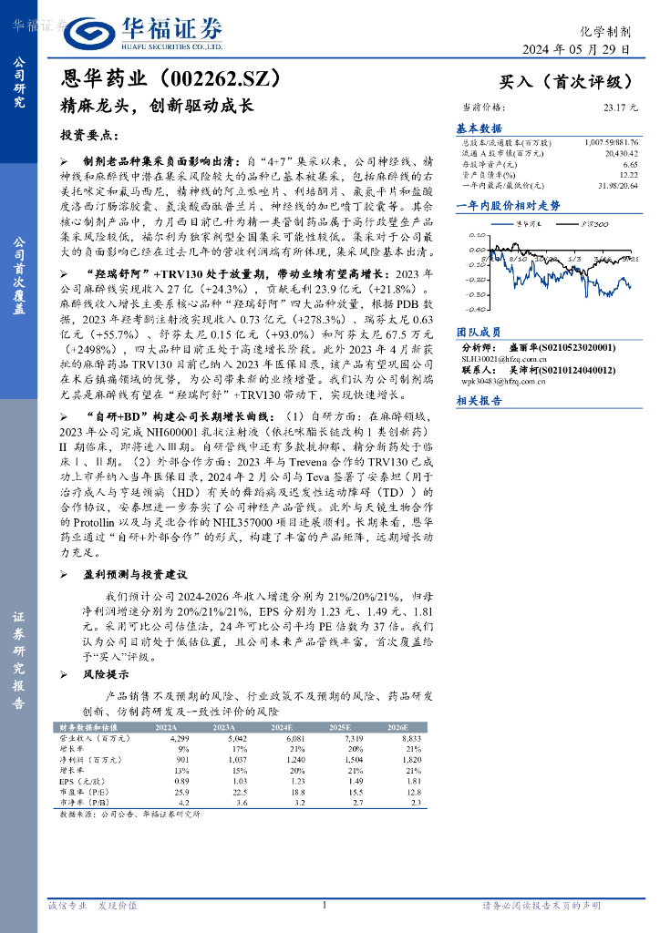 华福证券:恩华药业(002262)-精麻龙头,创新驱动成长.pdf