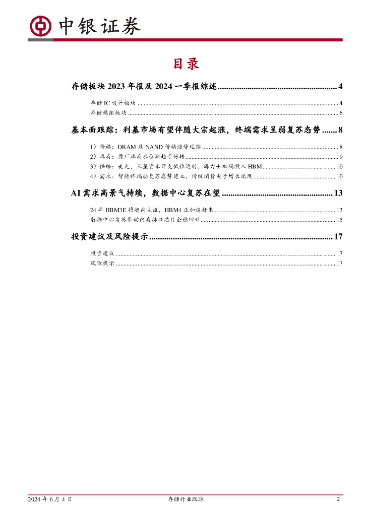 中银证券:存储行业跟踪:利基存储企稳回升在望,AI驱动高端需求加速放量.pdf