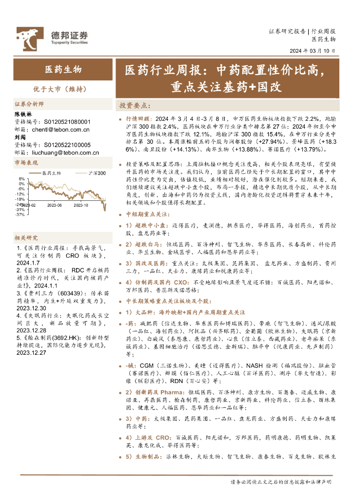 德邦证券:医药行业周报:中药配置性价比高,重点关注基药+国改.pdf
