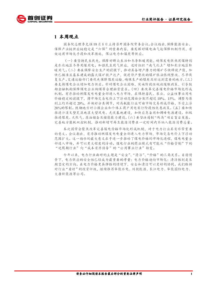 首创证券:公用事业行业简评报告:改革完善煤电价格市场化形成机制.pdf