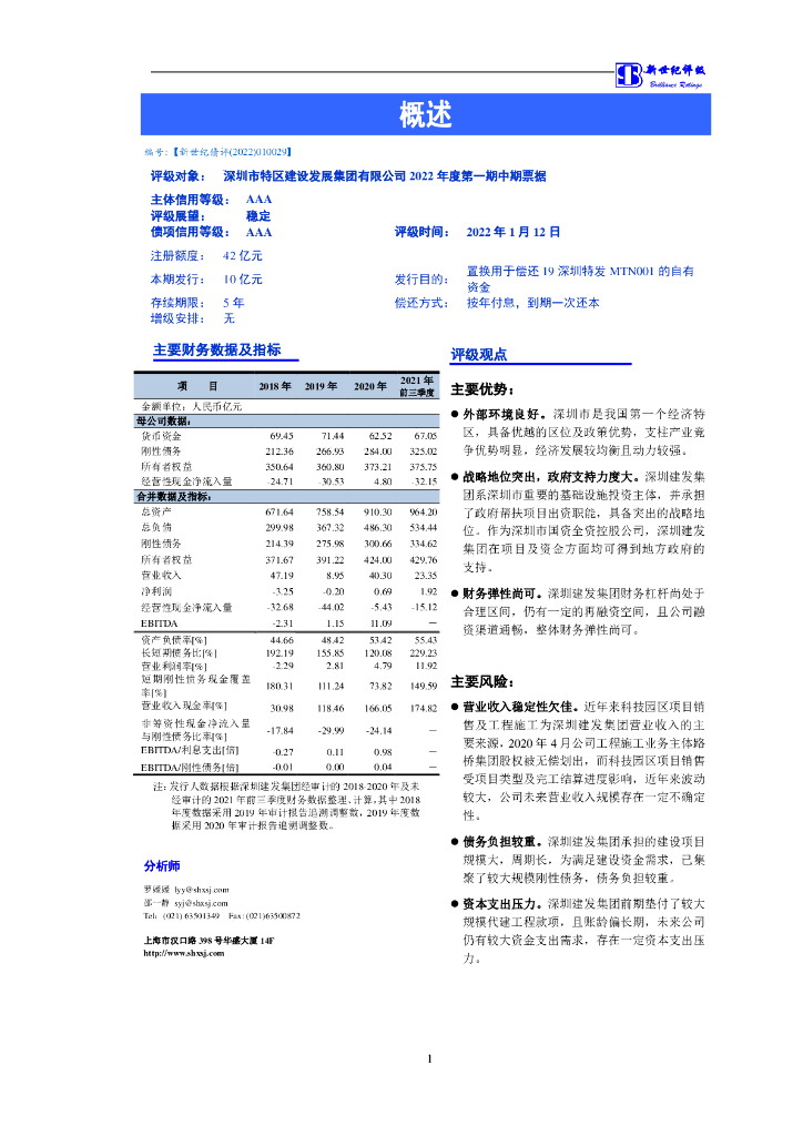 新世纪:深圳市特区建设发展集团有限公司2022年度第一期中期票据信用评级报告及跟踪评级安排.pdf