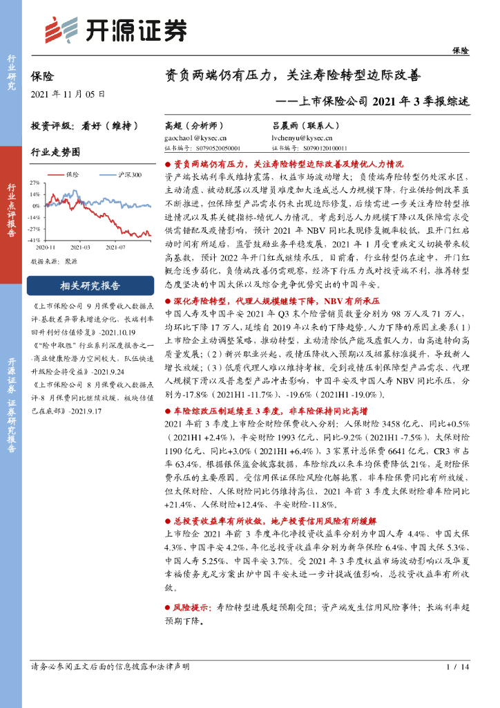 开源证券:上市保险公司2021年3季报综述:资负两端仍有压力,关注寿险转型边际改善.pdf
