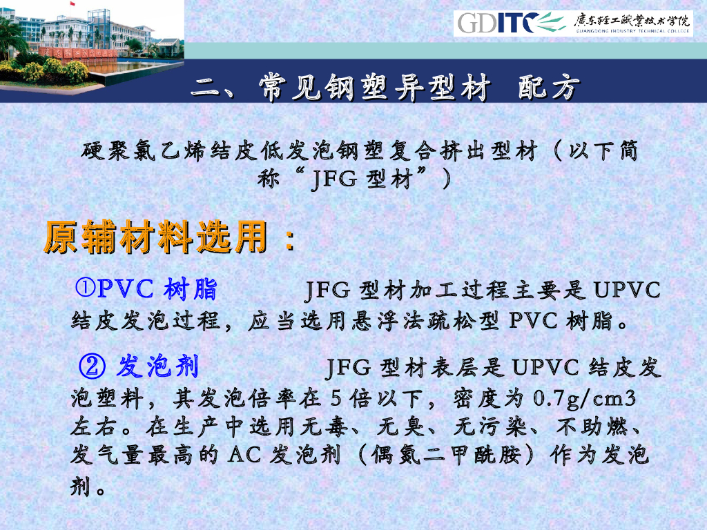 《塑料挤出成型》演示文稿-项目4 异型材挤出成型 单元7 硬聚氯乙烯结皮发泡钢塑共挤型材.pdf
