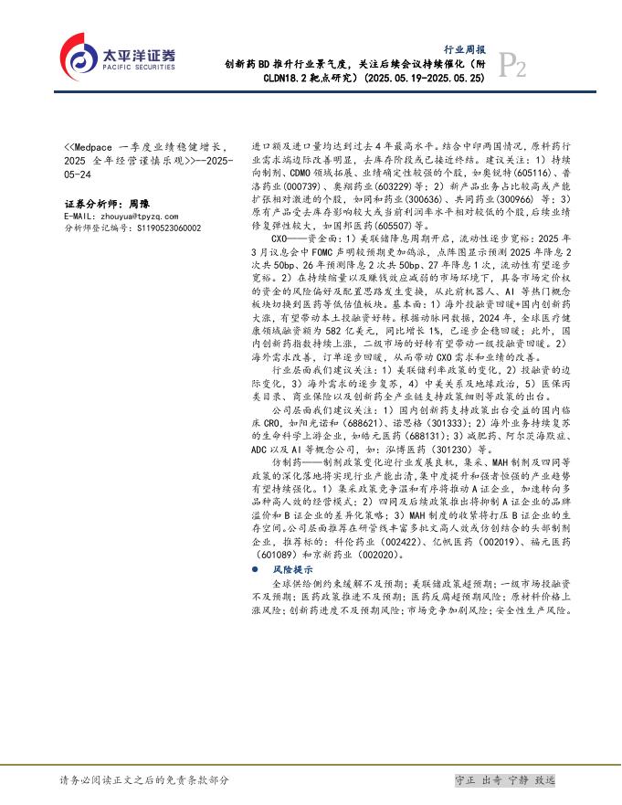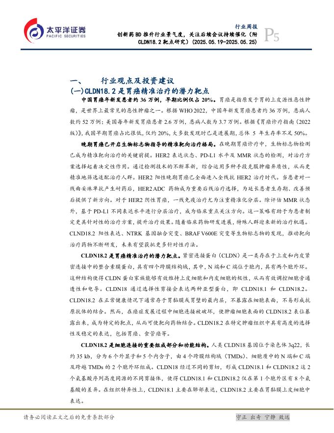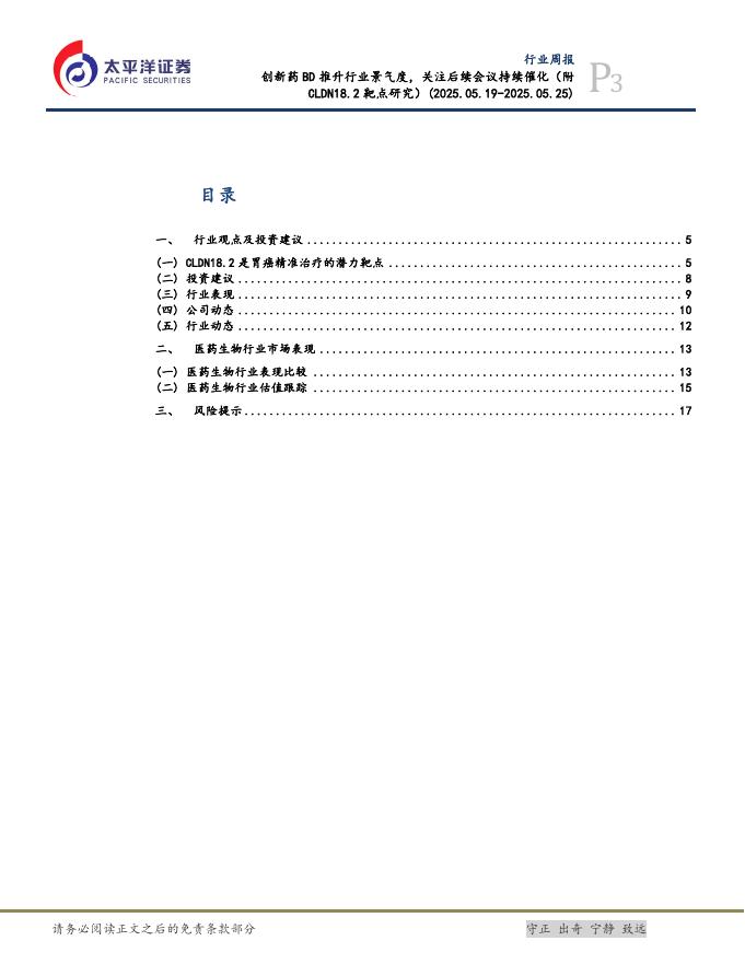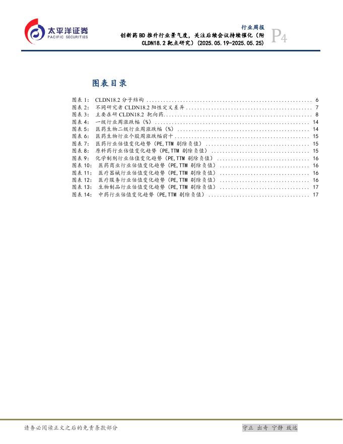 太平洋证券:医药行业周报:创新药BD推升行业景气度,关注后续会议持续催化(附CLDN18.2靶点研究).pdf