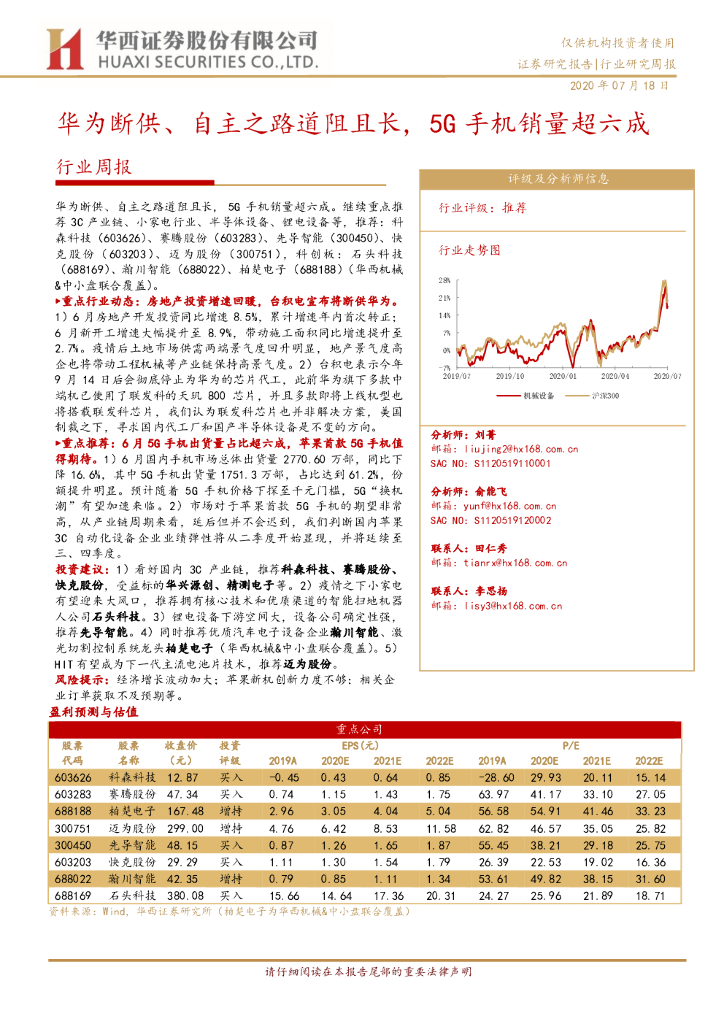 华西证券:机械行业周报:华为断供、自主之路道阻且长,5G手机销量超六成.pdf