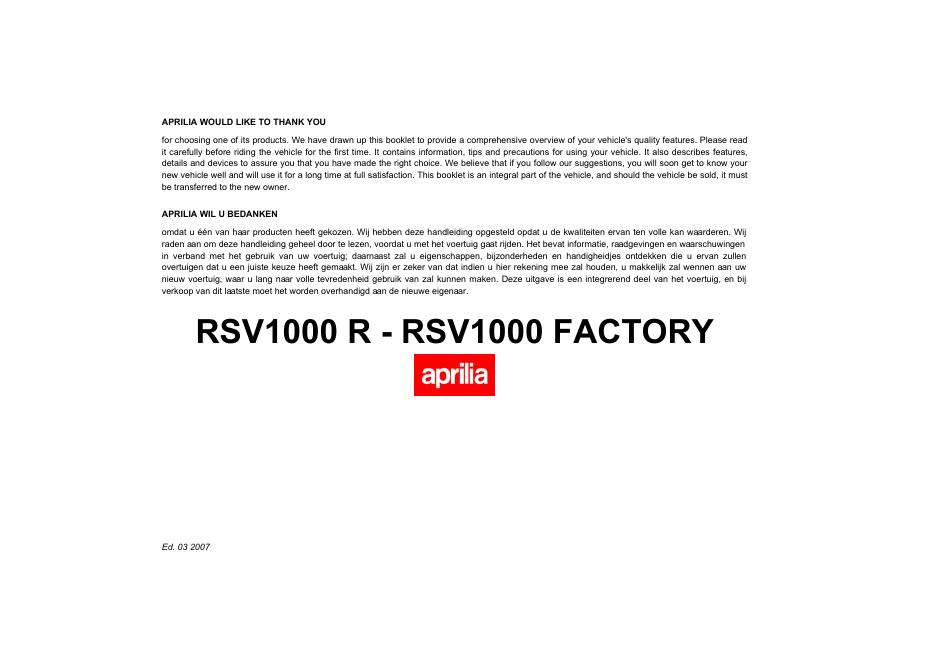 aprilia 854021 RSV 1000 R-Factory UK-NL 2007 使用手册.pdf