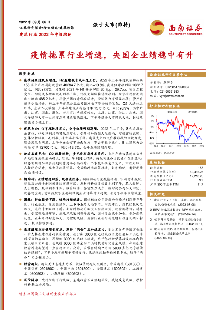 西南证券:建筑行业2022年中报综述:疫情拖累行业增速,央国企业绩稳中有升.pdf