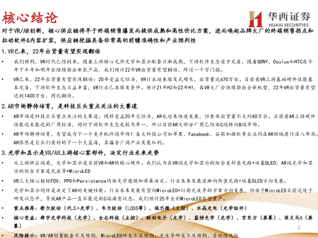 华西证券:大光学VR/AR系列深度之六:洞察VR/AR蓝海,解锁上游供应格局.pdf