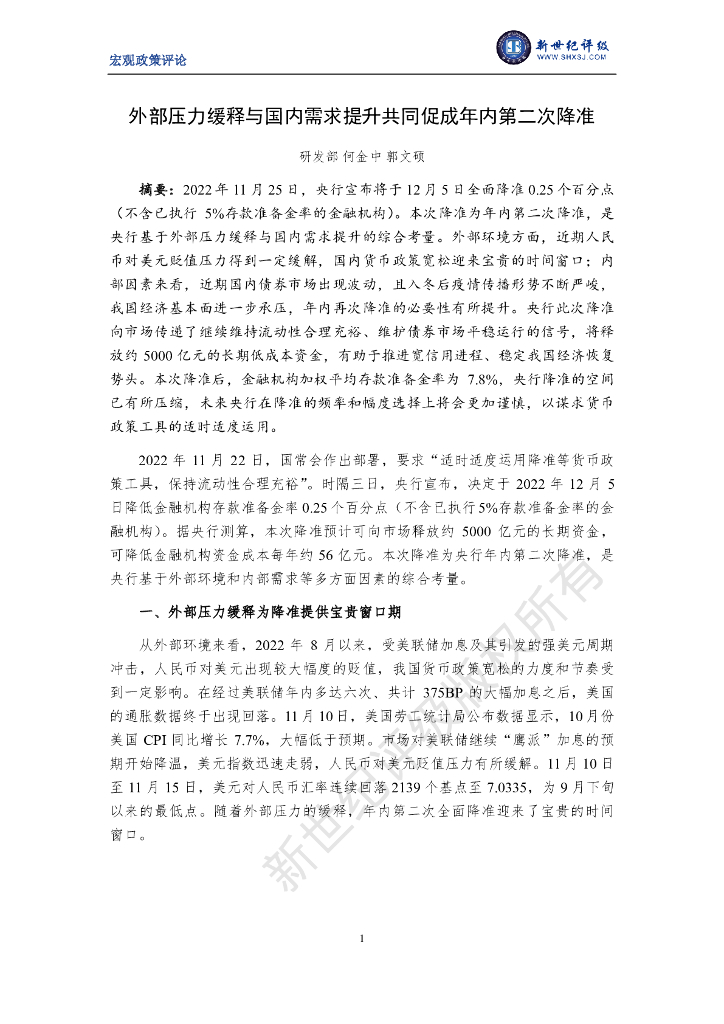 新世纪评级:外部压力缓释与国内需求提升共同促成年内第二次降准.pdf