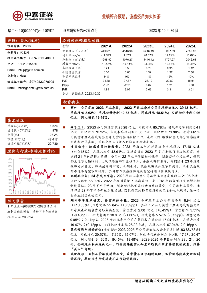 中泰证券:华兰生物(002007)-业绩符合预期,流感疫苗如火如荼.pdf