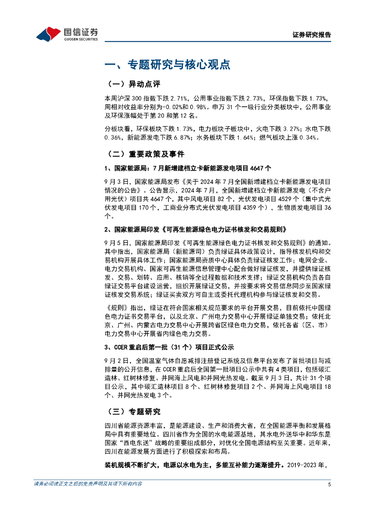国信证券:公用环保行业202409第2期:绿证核发和交易规则发布,CCER重启后第一批项目公示.pdf
