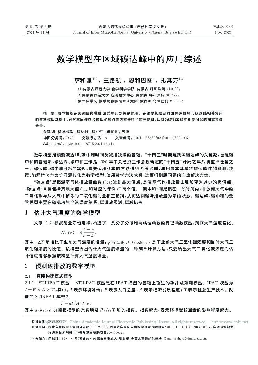 内蒙古师范大学:数学模型在区域碳达峰中的应用综述.pdf