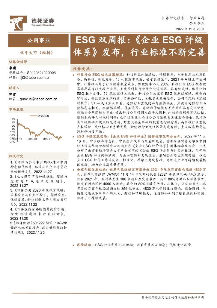 德邦证券:公用事业ESG双周报:《企业ESG评级体系》发布,行业标准不断完善.pdf
