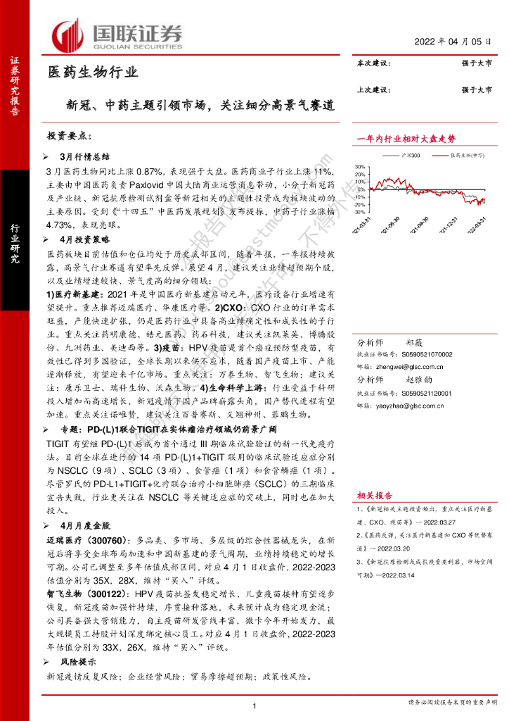 国联证券:医药生物行业:新冠、中药主题引领市场,关注细分高景气赛道.pdf