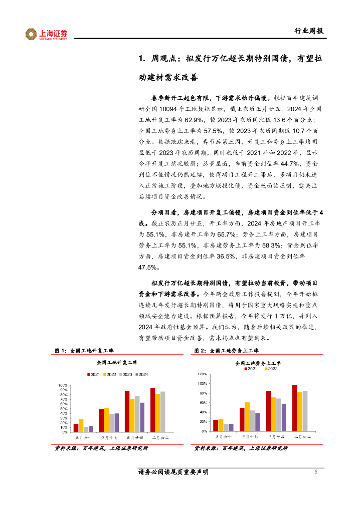 上海证券:建筑材料行业周报:拟发行万亿超长期特别国债,有望拉动建材需求改善.pdf