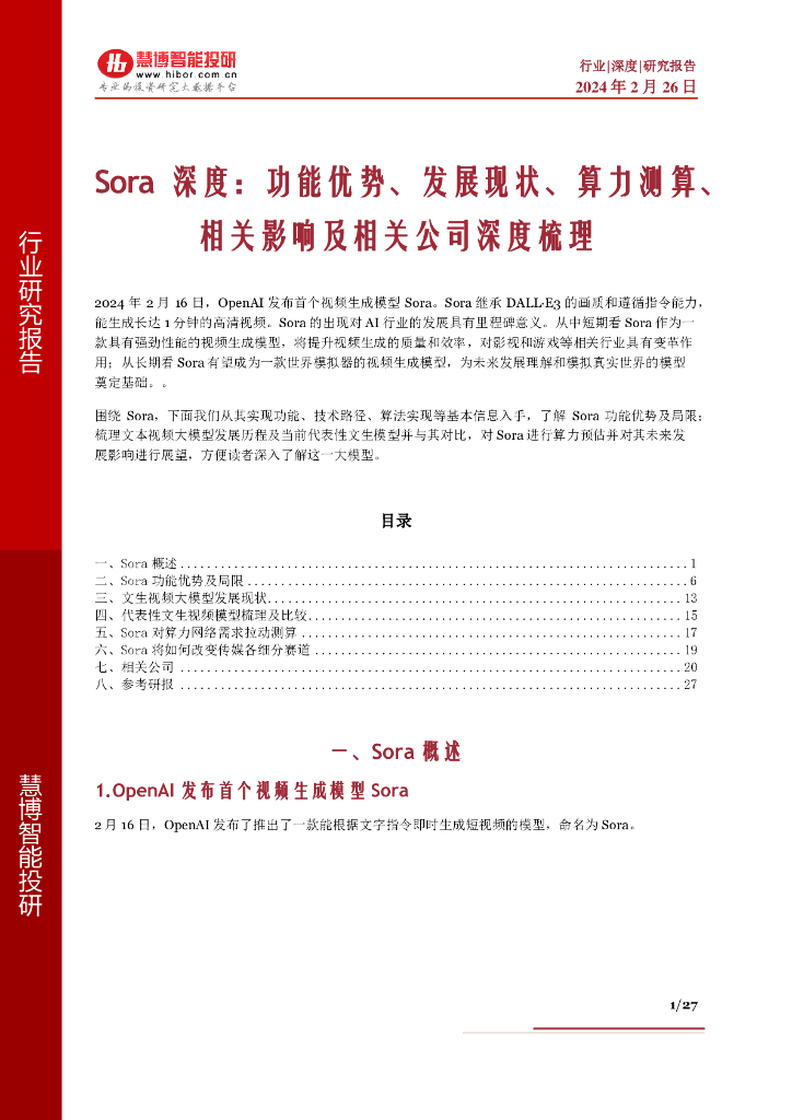 慧博智能投研:Sora深度:功能优势、发展现状、算力测算、相关影响及相关公司深度梳理.pdf