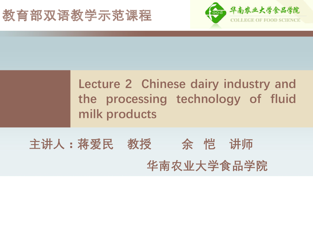 《畜产食品工艺学》教学课件-Chinese dairy industry and the processing technology of fluid milk products.pdf