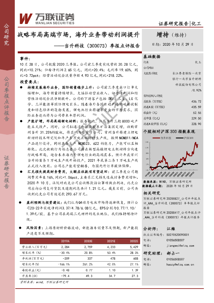 万联证券:当升科技(300073)-季报点评报告:战略布局高端市场,海外业务带动利润提升.pdf