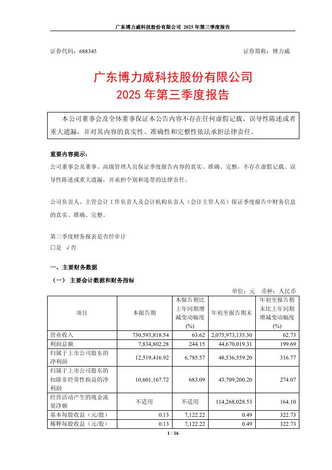 688345-博力威:广东博力威科技股份有限公司2025年第三季度报告.pdf