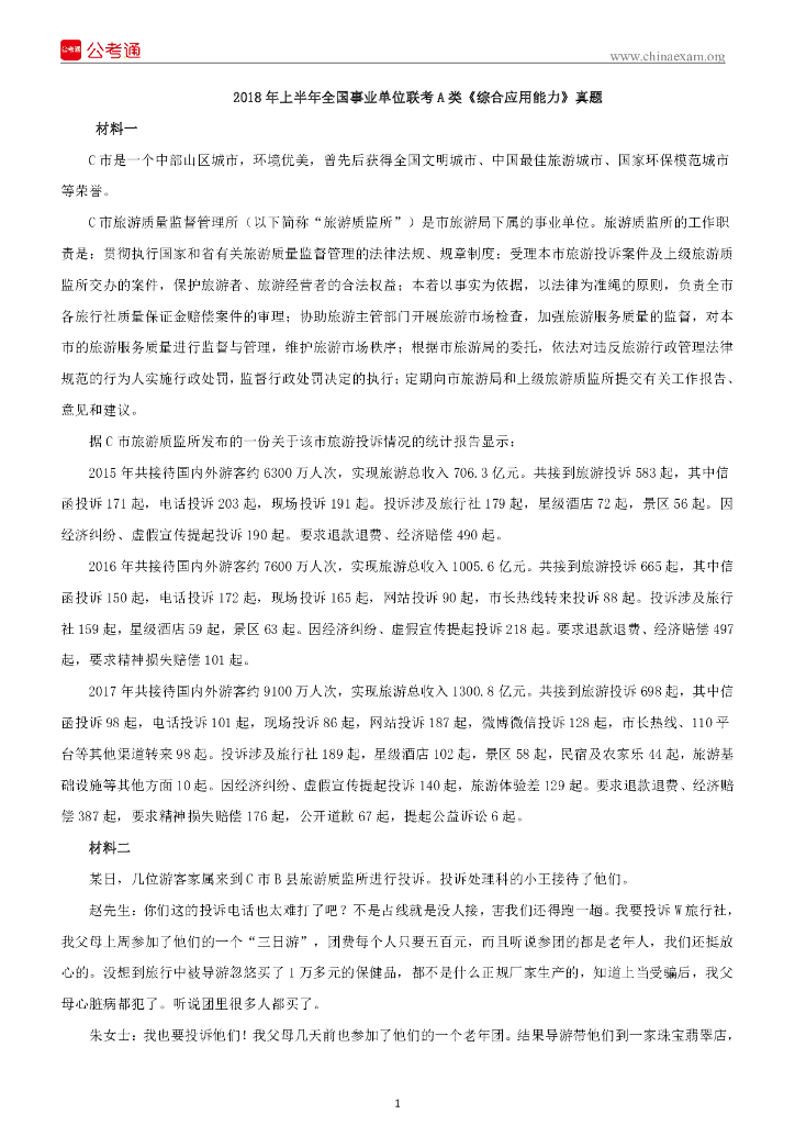 2018上半年事业单位联考《综合应用能力》A类真题及答案.pdf