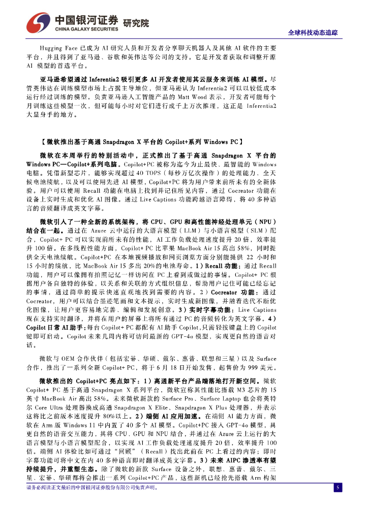 中国银河:计算机行业全球科技动态追踪:微软推出基于高通SnapdragonX平台的Copilot+PC,端侧AI应用加速.pdf