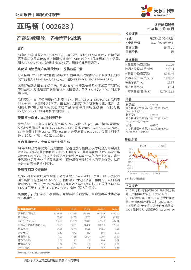 天风证券:亚玛顿(002623)-产能陆续释放,坚持差异化战略.pdf