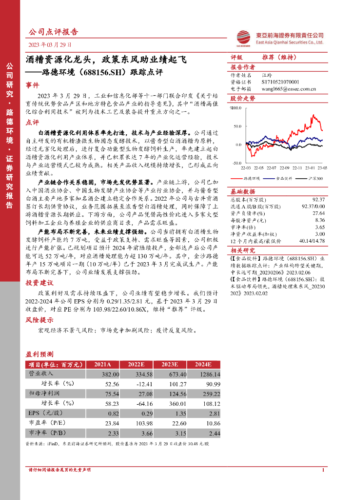 东亚前海证券:路德环境(688156)-跟踪点评:酒糟资源化龙头,政策东风助业绩起飞.pdf