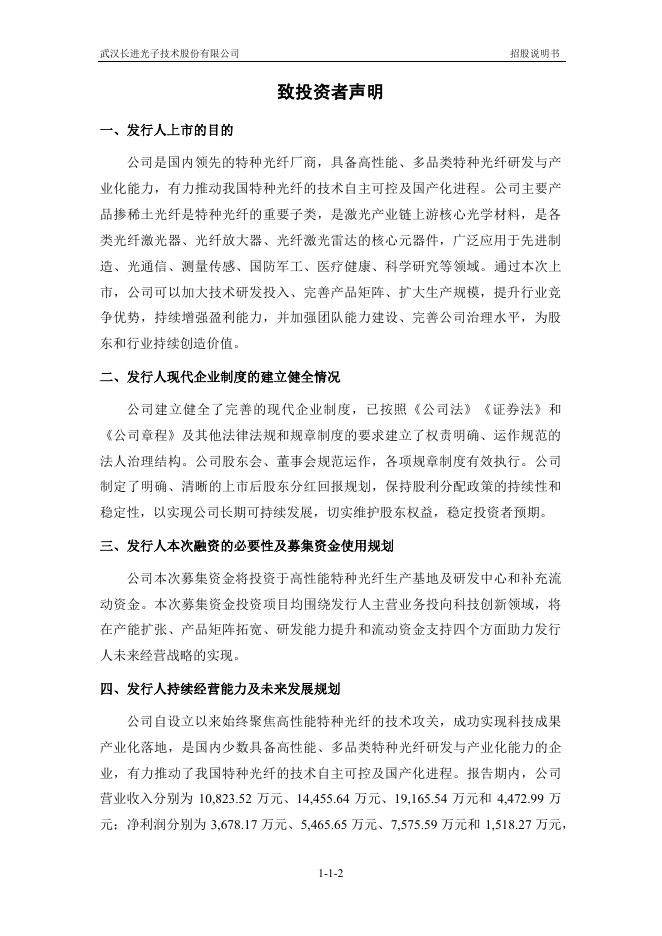 武汉长进光子技术股份有限公司科创板IPO上市招股说明书.pdf